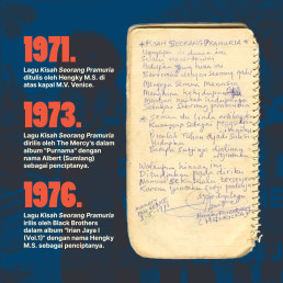 Lagu Kisah Seorang Pramuria dirilis oleh The Mercy’s dalam album “Purnama” dengan nama Albert (Sumlang) sebagai penciptanya.